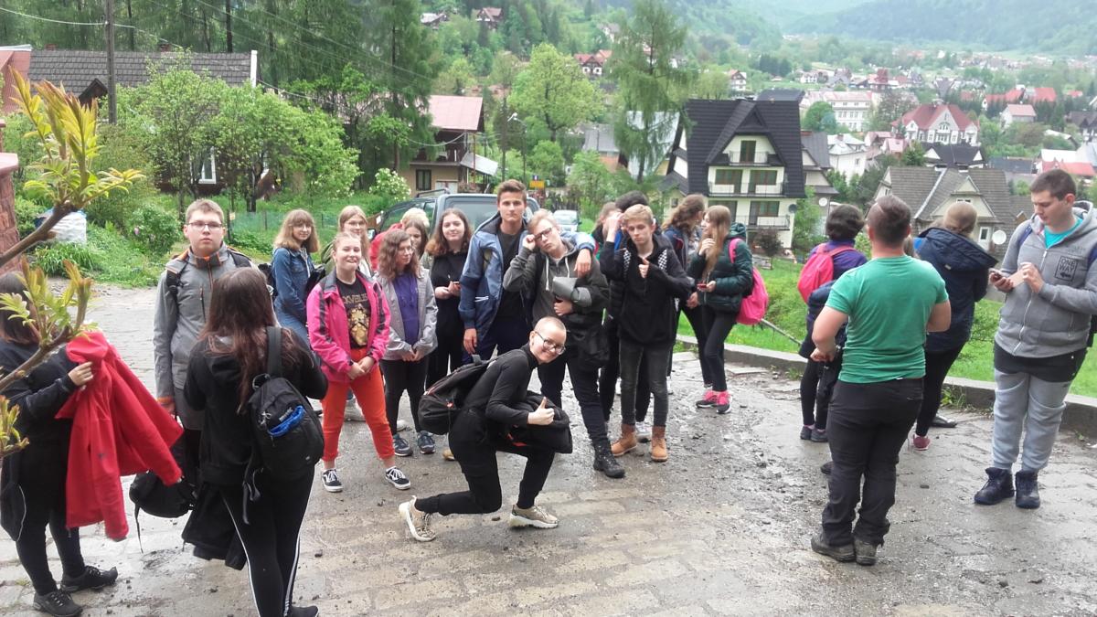 Ostatnia gimnazjalna wycieczka odbyła się w Pieniny. Na szlak wyruszyliśmy w promieniach słońca, ale szczyt Trzech Koron zdobyliśmy w strugach deszczu. Pogoda nas nie rozpieszczała, jednak humory dopisywały. Udało nam się nawet zaobserwować salamandrę plamistą.