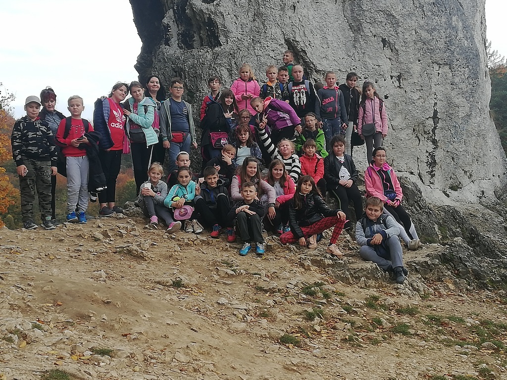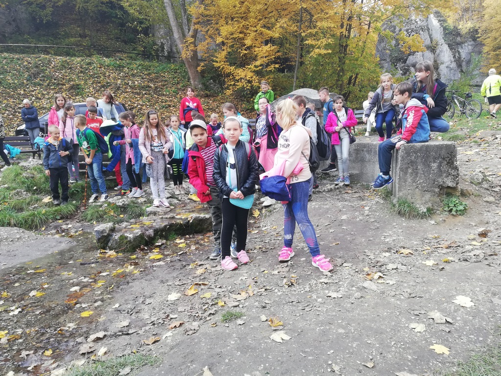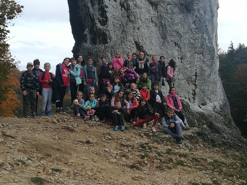 16 października, w piękny jesienny dzień, uczniowie klas IV-VI pojechali na wycieczkę do Ojcowa. Zaraz po przyjeździe wyruszyli do Groty Łokietka. Trudy wspinaczki wynagrodziły im piękne widoki i atrakcje Groty, m.in. nietoperze. Uczestnicy wycieczki chętnie zwiedzili Muzeum Parku Ojcowskiego. Poznali różne gatunki występujące na terenie parku i obejrzeli film 3D. Kolejnym punktem programu była Pieskowa Skala i znajdujący się tam zamek oraz słynna Maczuga Herkulesa.
